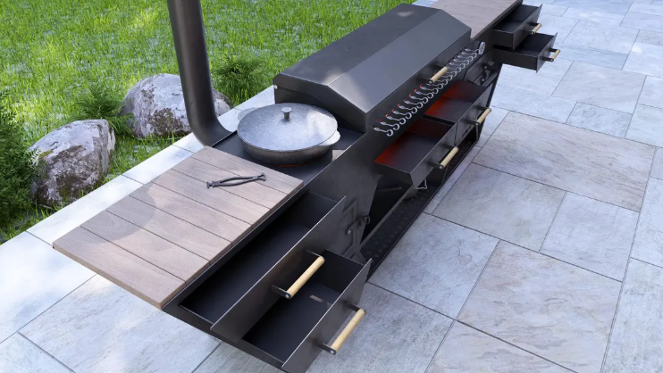 Le Patriarche — Cuisine extérieure premium en acier Imposant, robuste et conçu pour durer, Le Patriarche est une véritable cuisine extérieure au feu de bois. Pensé pour les grandes tablées et les...
